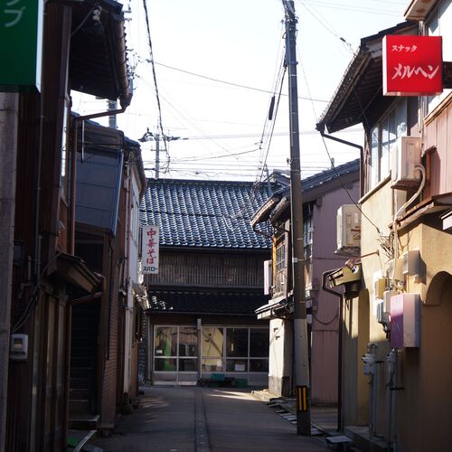 新年2度目の徘徊は射水市の新湊を目指すことにした。 新湊も決して大きな街ではないけれど、 3軒の銭湯が残っている。 あいの風とやま鉄道の電車に揺られて高岡へ。 この日の高岡では「日本海高岡なべ祭り」やらが開催されるようで、 駅周辺は準備の真っ盛り…